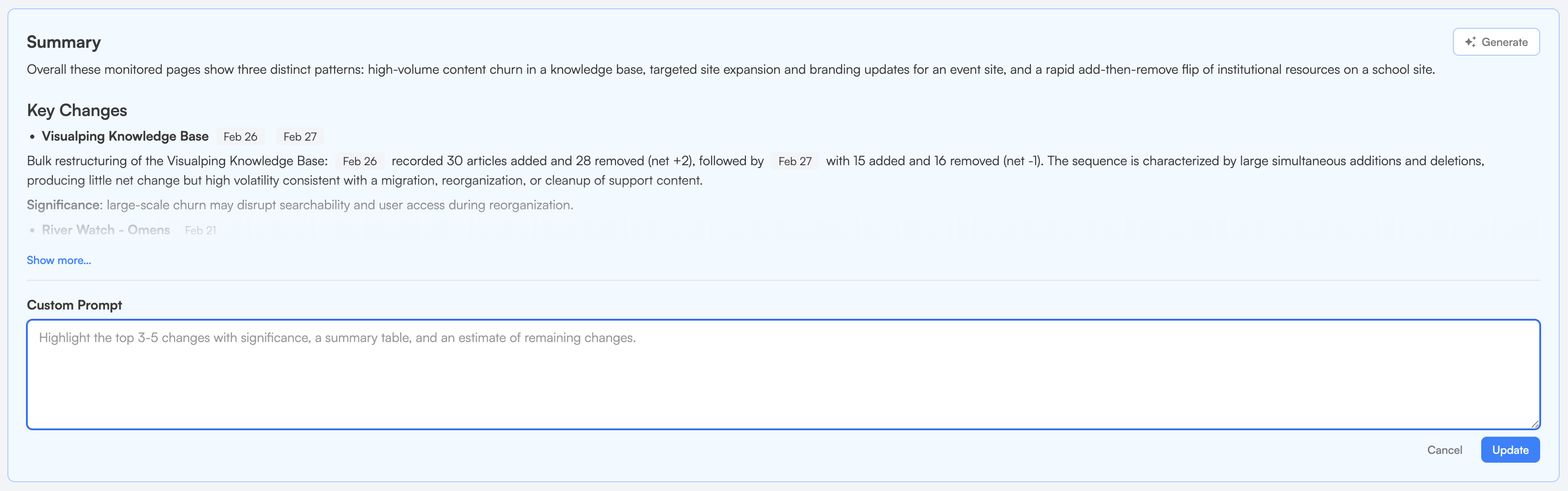 If your report contains noise — footer updates, cookie banners, or other low-importance changes — tell the AI to leave those out so the summary stays focused.