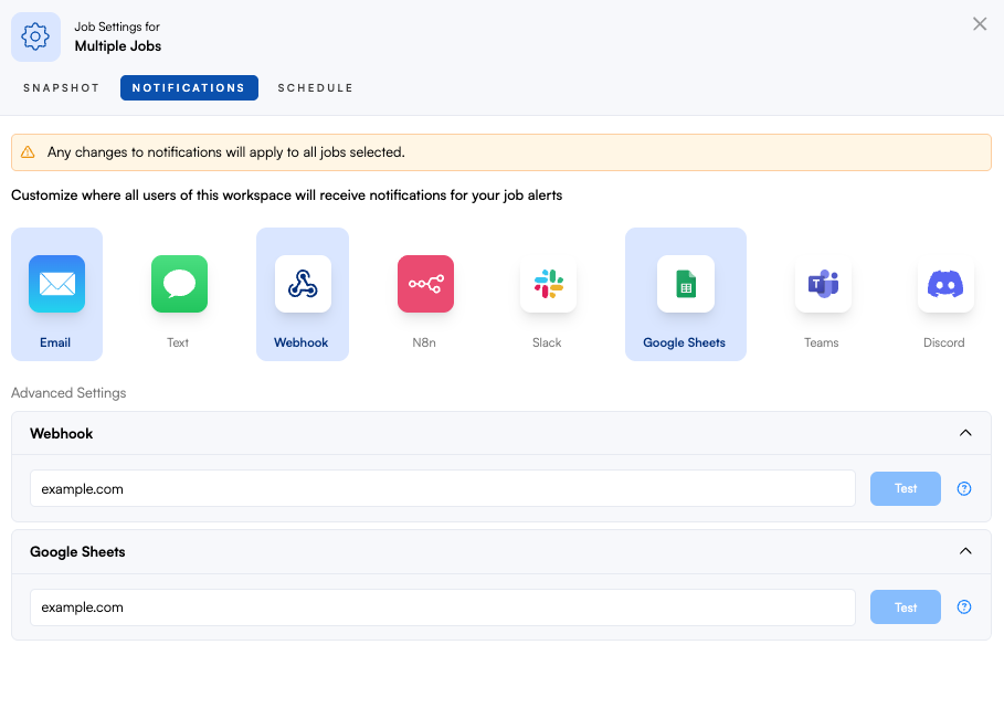 Bulk editing is a great way to make changes to multiple jobs at the same time. This can be helpful if you need to run, activate, deactivate, pause, delete, label, move, export, and edit job settings individually or in bulk. Note: This feature is only available on business plans.